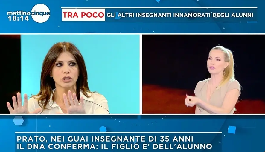 Scandalo in tv per le dichiarazioni molto forti di Emanuela Tittocchia, ospite lo scorso mercoledì a Mattino 5 per commentare il caso dell’insegnante di ripetizioni 35enne che ha avuto un figlio dal suo allievo di 14 anni. La donna ha svelato in diretta di avere un rapporto speciale (da quasi 4 anni) con un ragazzino di 14 anni, lasciando senza parole i presenti.