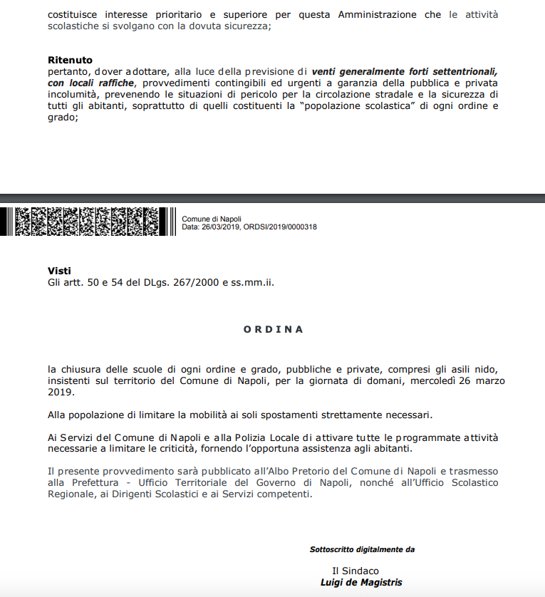 In tanti stanno aspettando da diverse ore l’annuncio del comune partenopeo. Il sito dell’amministrazione presieduta da Luigi de Magistris è stato preso d’assalto dagli utenti e risulta complicato collegarsi per la grossa mole di traffico in entrata. Il tam-tam corre in rete dal primo pomeriggio, così come le chat di insegnanti, genitori e collaboratori scolastici sono “bollenti” in attesa dell’eventuale fumata bianca. E’ stata diffusa addirittura una ordinanza fake, scritta in un italiano approssimativo, che in tanti considerano ingenuamente ufficiale.