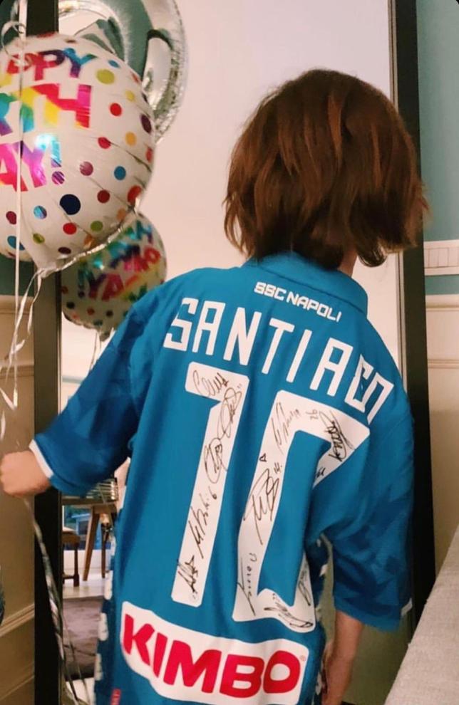 La numero 10 azzurra, con tanto di autografi dei campioni azzurri, con il nome Santiago, è apparsa sui social del papà fiero di avere un figlio tifoso.
