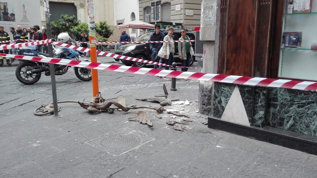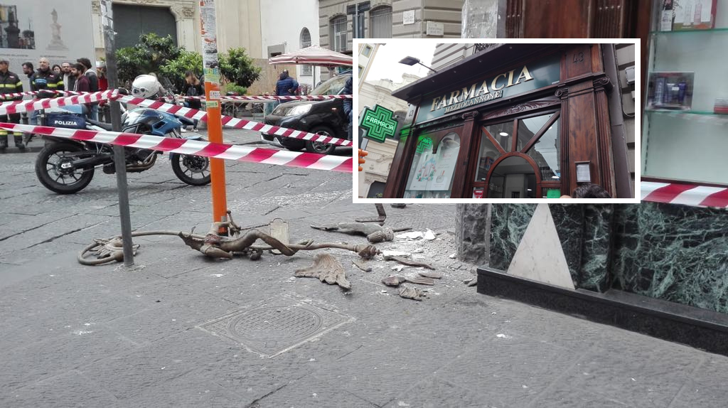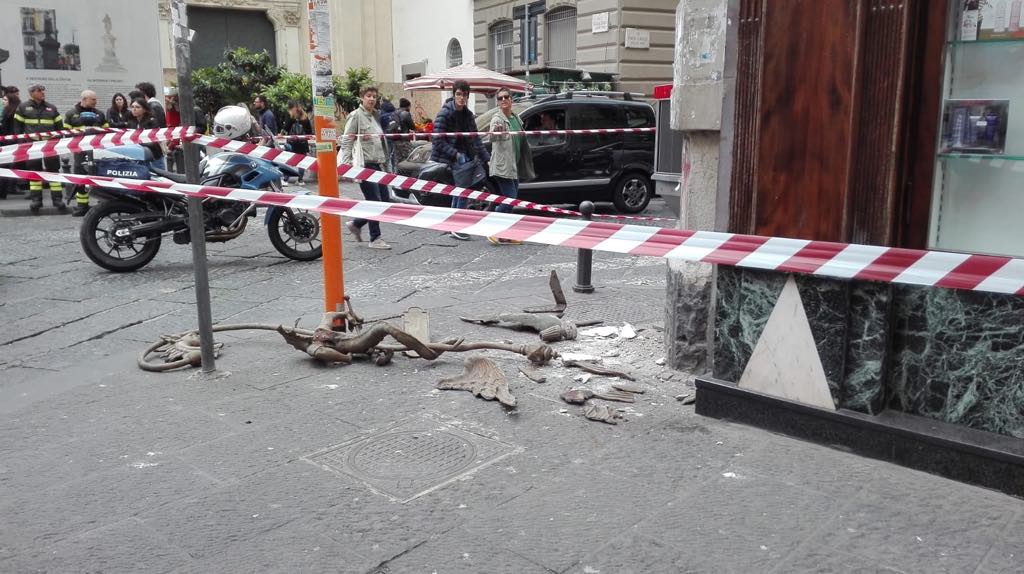 E’ stato ferito alla testa, pare in modo non grave, dalla caduta di fregio di ferro, staccatosi da una farmacia, avvenuta nella tarda mattinata di lunedì all’angolo tra Porta di Massa e corso Umberto a Napoli. La vittima è un turista tedesco di 17 anni che stava camminando in strada quando è stato raggiunto alla testa dai calcinacci della storica farmacia “Mezzocannone” presente nella zona.