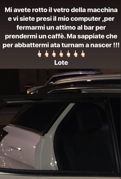 Nel post, con tanto di foto della sua auto danneggiata dal furto, Nancy reagisce prontamente e lancia un messaggio ai malviventi: “Vi siete presi il mio computer del lavoro ma sappiate che per abbattermi ata turna’ a nascer”.
