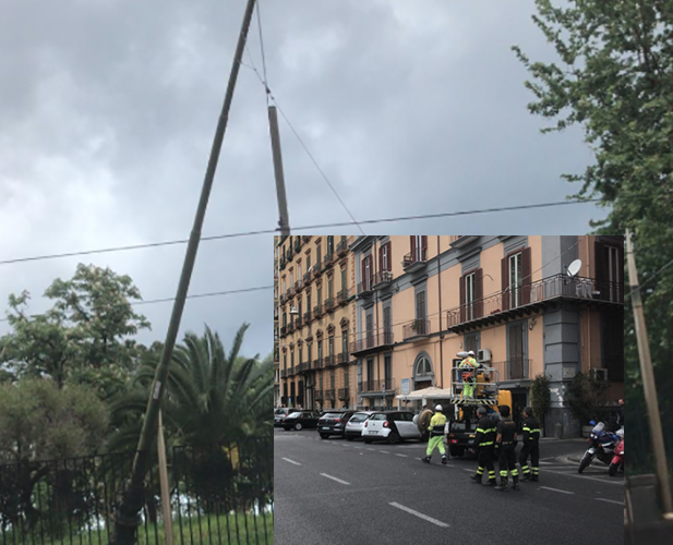 Crolla palo della luce, tragedia sfiorata alla Riviera di Chiaia: strada chiusa e disagi