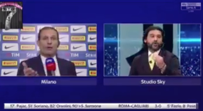 “Te sei il primo che legge i libri e di calcio non sai nulla”. E poi ancora: “Ora parlo io e stai zitto. Parli con un allenatore che ha vinto sei scudetti”. E’ un Massimiliano Allegri che perde le staffe nel post partita di Inter-Juve (1-1, reti Nainggolan e Ronaldo). Ai microfoni di Sky Sport l’allenatore toscano è protagonista di un’accesa discussione, dove non sono mancate le offese, con Daniele Adani, detto Lele, opinionista ed ex difensore.