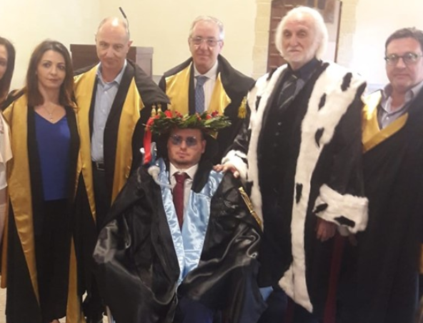 Uno dei giorni più belli, più attesi della sua vita. Un traguardo raggiunto con caparbietà e determinazione da Antonio Tessitore, 42 anni, malato di sclerosi laterale amiotrofica (SLA) da circa quindici anni. Ieri, mercoledì 8 maggio, la discussione della tesi in Diritto Tributario (su “L’attività di accertamento fiscale. Presupposti e tipologie”) davanti alla commissione dell’università telematica Pegaso nel monastero di Santa Chiara a Napoli.