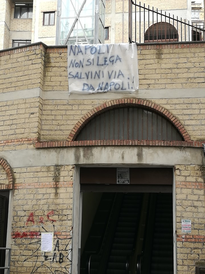 Napoli si prepara ad accogliere “pacificamente” Salvini con una serie di striscioni esposti sui balconi delle abitazioni presenti in città. L’appello lanciato in rete non solo da Potere al Popolo e dagli attivisti di “Je so pazzo” ma anche da semplici cittadini sta riscuotendo consensi. Numerosi infatti gli striscioni contro il capo politico della Lega. “Prendi una bomboletta, un telo grande e visibile, scrivi ‘Salvini Napoli non ti vuole’, esponi lo striscione da una finestra o un balcone di casa”, chiedono gli attivisti ai cittadini.