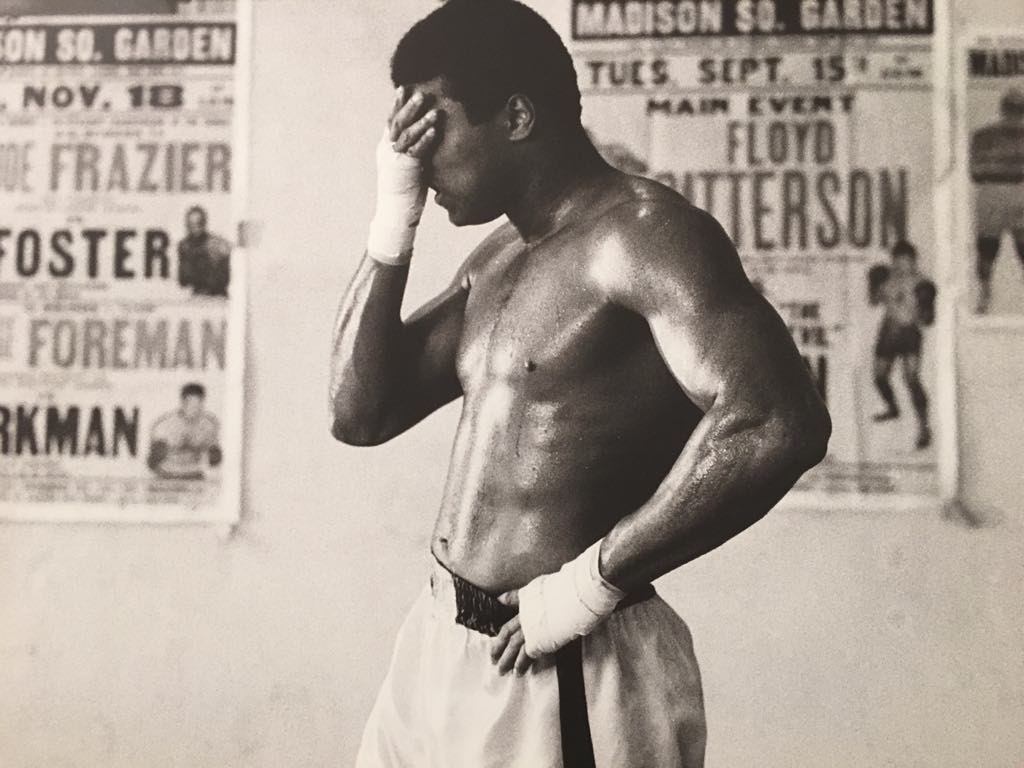 Quelle che mi hanno emozionato più delle altre sono relative all’Ali più intimo. Quello lontano dalle telecamere, quello in palestra ad allenarsi tra fatica, sudore e sacrificio. Un volto, uno sguardo – quello di Ali – capace di raccontare una miriadi di sentimenti.