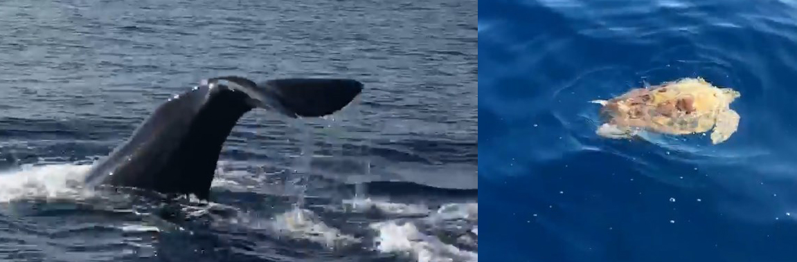 La tartaruga marina comune, che tra i due esemplari è la più facile da avvistare, è una specie diffusa prevalentemente nel Mediterraneo, ma è purtroppo in forte via d’estinzione nei nostri mari a causa dell’inquinamento, che ogni anno miete molte vittime di questa specie. Il capodoglio invece è un tipo di cetaceo diffuso in tutti i mari ma che predilige acque calde e temperate. Assieme alla balenottera comune, è uno dei due cetacei che è possibile avvistare nel Mediterraneo, ma dato che trascorre molto tempo in immersione a grandi profondità (fino a mille km) è difficile da avvistare.