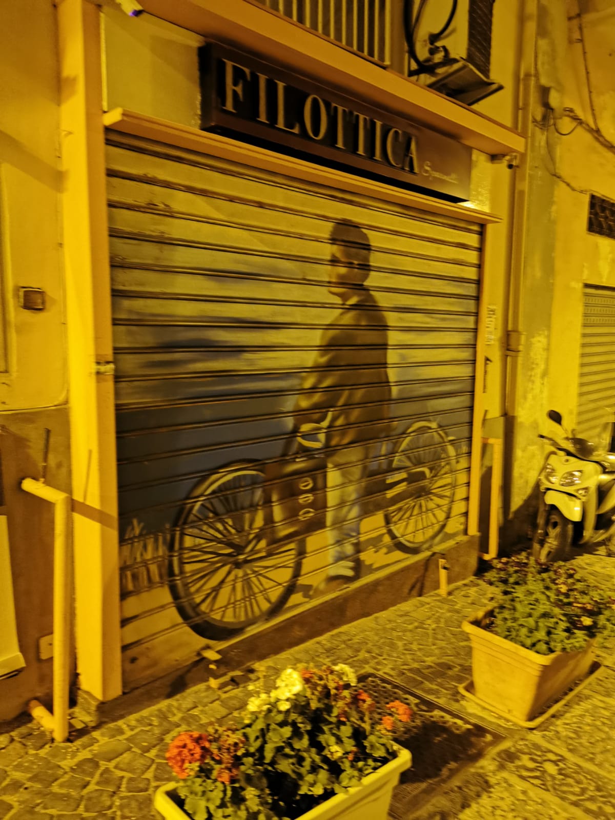 Day by day Procida si colora di storia del cinema allo stato puro, avendo come filone portante dell’evento la celebrazione del talento e della simpatia autentici di Massimo Troisi. In città è anche apparsa una raffigurazione dell’attore in bici, con l’azzurro del mare della splendida isola a fargli da sfondo, sulla saracinesca di una nota attività commerciale.