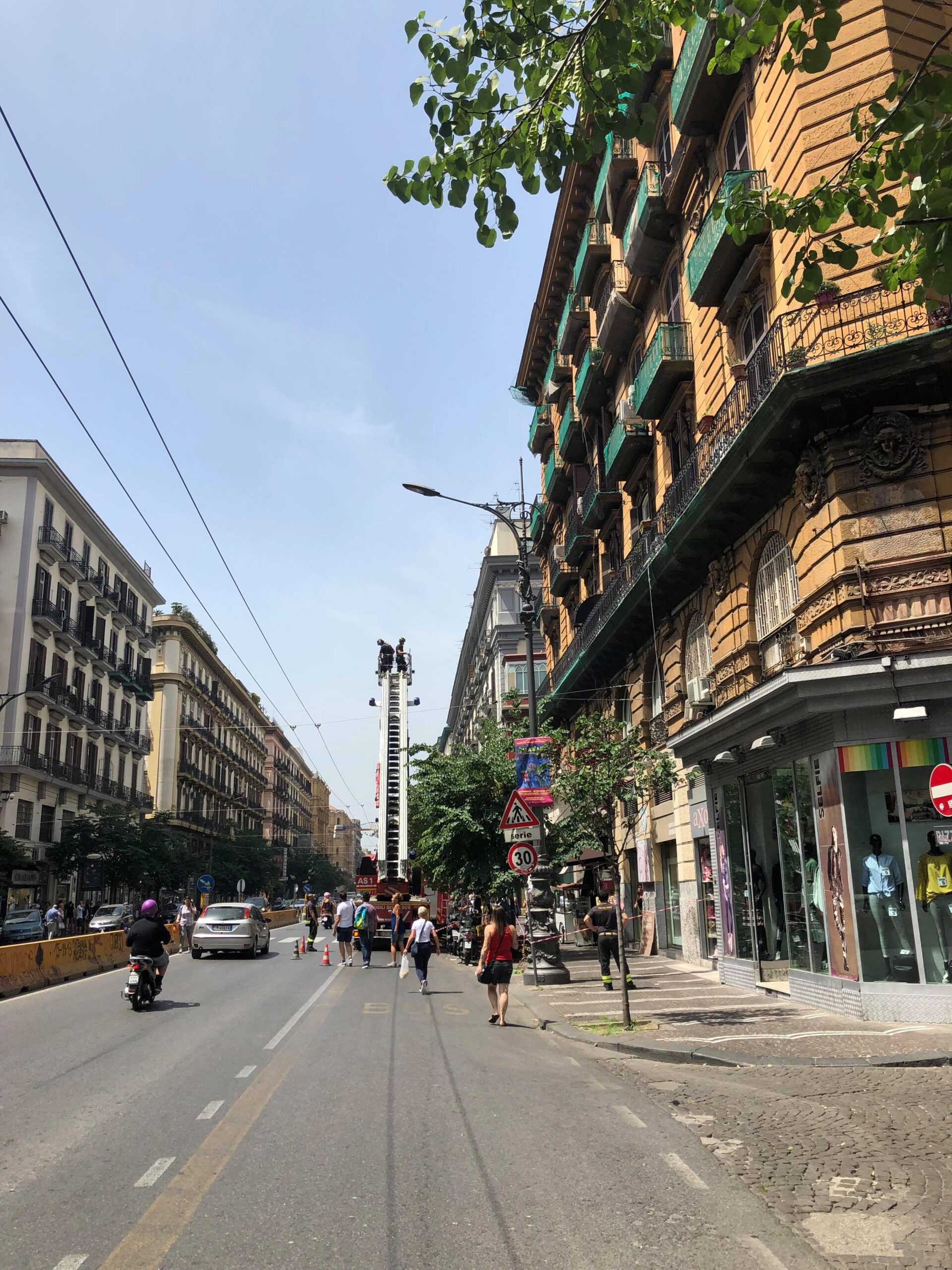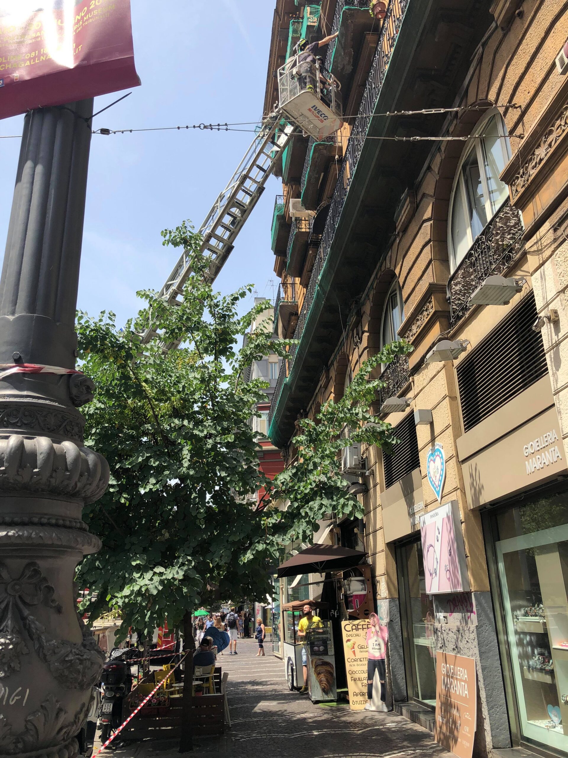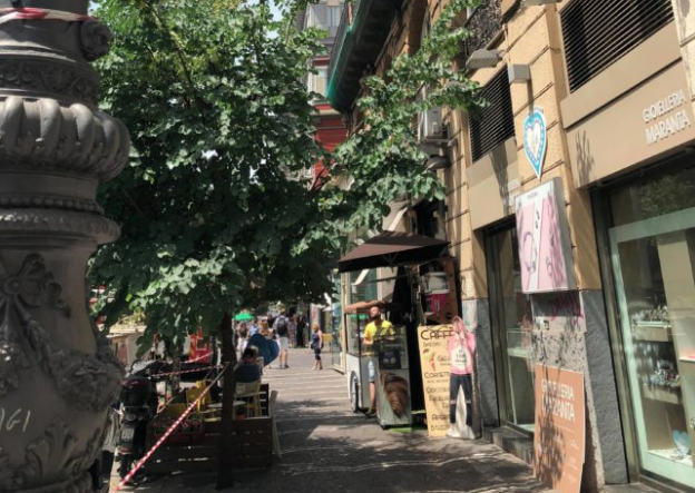 Balcone pericolante sul corso Umberto, vigili del fuoco in azione ma al bar la colazione continua
