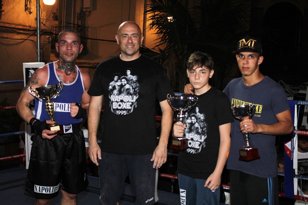 I successi sono andati a Cavallo (premiato come pugile più tecnico della riunione) contro Romano (50kg Schoolboy), Dilengite contro Passaro (64kg Elite II serie), Ottati contro Crescenzo (57kg junior), Benaicha (pugile più combattente della serata) contro Longobardo (54kg junior), Terlizzi contro Longobardo (81kg youth) e Treglia (miglior pugile della riunione) contro Zinfolino (75kg Elite I serie), mentre gli incontri pari sono stati Baiano-Villani (91kg Elite II serie) e Forte-Coppola (60kg junior). Ai vincitori dei match della riunione, organizzata con il supporto di Massimo Nota, ex pugile della nazionale italiana e titolare della Tabacchi Preziosi, che ha affiancato per l’occasione i partner della Napoliboxe, lo studio dentistico Vittozzi e lo studio fisioterapico Delos che contribuiscono alla preparazione degli atleti del team, sono state donate le maglie del marchio “Quartieri Spagnoli”.