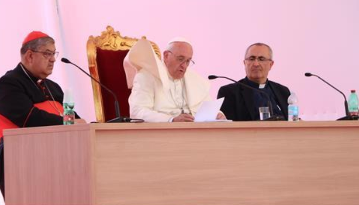 “Penso alla non violenza come orizzonte e sapere sul mondo, alla quale la teologia deve guardare come proprio elemento costitutivo. Ci aiutano qui gli scritti e le prassi di Martin Luther King e Lanza del Vasto e di altri ‘artigiani’ di pace. Ci aiuta e incoraggia la memoria del Beato Giustino Russolillo, che fu studente di questa Facoltà’, e di Don Peppino Diana, il giovane parroco ucciso dalla camorra, che pure studio’ qui”. Cosi’ Papa Francesco, nel suo discorso al Convegno sul tema: “La teologia dopo Veritatis gaudium nel contesto del Mediterraneo”, nella sede della Pontificia Facolta’ Teologica dell’Italia Meridionale in via Petrarca.