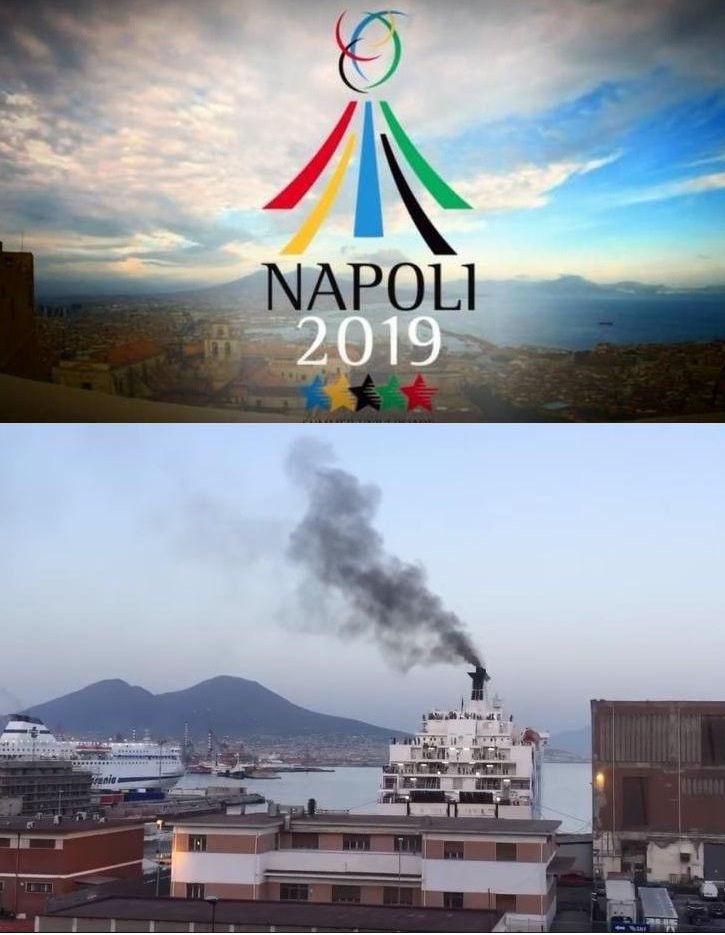 Per far fronte al numero esorbitante di atleti, squadre e personale vario previsti per l’evento sportivo, il comune e la regione hanno dovuto trovare una soluzione per sistemare tutti gli ospiti in spazi adeguati e quanto più vicini possibili alle venue sportive dove si terranno le competizioni. La decisione presa non è delle migliori, anzi forse è la peggiore che si potesse trovare. Infatti, saranno due navi da crociera, la Msc “Lirica” e la Costa Crociere “Victoria“, ad ospidare i più di 4000 atleti attesi per l’evento, in aggiunta ai poli alberghieri tra Caserta e Salerno e il campus di Fisciano. Fin qui nessun problema, ma queste navi da crociera dovranno rimanere a motore acceso per tutto il tempo della kermesse, sostando in modo permanente nel porto di Napoli, 24h24. I motori dovranno rimanere accesi a causa del fatto che le banchine dove sosteranno le navi non sono ancora provviste di elettricità, quindi senza motori, le navi non potrebbero fornire l’energia elettrica a bordo.