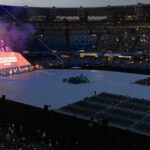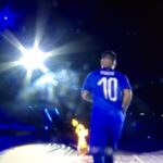 E’ l’ingresso dell’Argentina quello più apprezzato dal pubblico napoletano che si infiamma e subito inneggia al mito Diego Armando Maradona. Appare infatti la maglia numero 10 e parte l’entusiasmo.