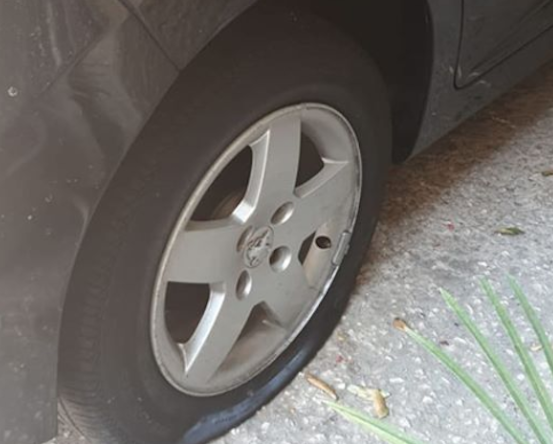 Ma l’abusivo non ci sta e chiede con insistenza il resto dei soldi. Il ragazzo non cede ed entra nel locale insieme ai suoi amici. All’uscita la spiacevole sorpresa: la ruota posteriore destra era bucata.