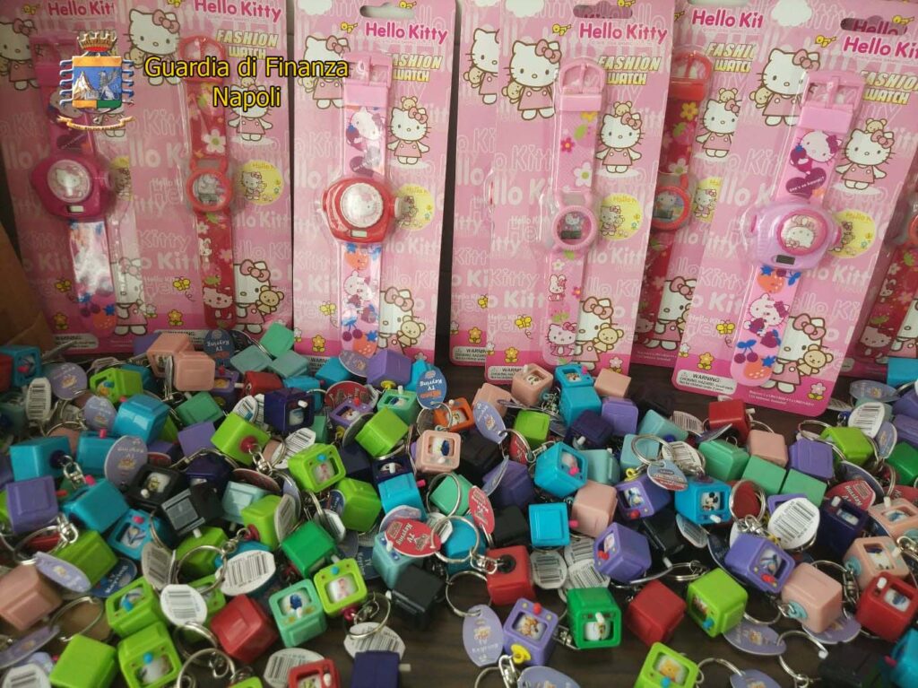 Giochi per bambini non sicuri e anche contraffatti. Maxi sequestro della Guardia di Finanza partenopea che ha tolto dal mercato circa due milioni e mezzo di oggetti in due distinte operazioni condotte nei comuni di San Giorgio a Cremano e Casoria, comuni in provincia di Napoli.