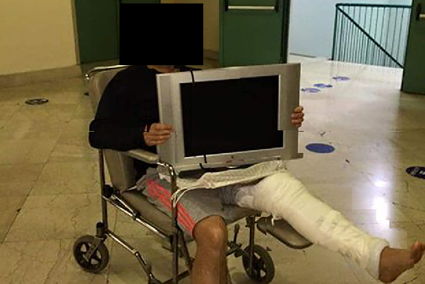 Una foto diffusa da Giuseppe Alviti, leader di Altra Italia, immortala un paziente seduto su una sedia a causa di una gamba fasciata con in braccio un televisore da posizionare nella stanza per vedere la gara tra Juve e Napoli. “Ovviamente oltre al folklore è cosa grave che in un Ospedale come quello dei Colli Aminei non ci sia attenzione verso gli ammalati in un un’atteggiamento che può procurare seri danni” commenta Alviti.