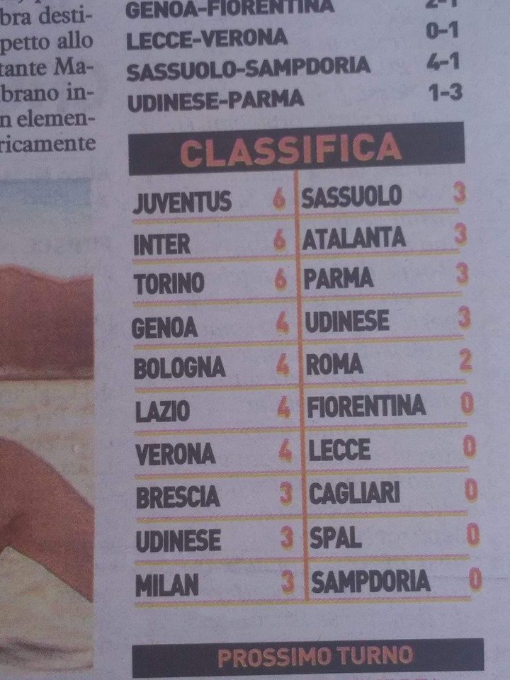 Prima le indimenticabili e comiche griglie della stagione passata, adesso la classifica di serie A senza il Napoli. La Gazzetta dello Sport continua a riservare un trattamento speciale ai tifosi azzurri. Un errore di battitura, probabilmente, quello che ha fatto sparire la squadra di Carlo Ancelotti dalla graduatoria del campionato dopo appena due giornate. Compare due volte l’Udinese e mai il Napoli. Uno strafalcione dovuto alla fretta, ai tempi stretti che caratterizzano tutte le redazioni, figuriamoci quella del principale quotidiano sportivo italiano.
