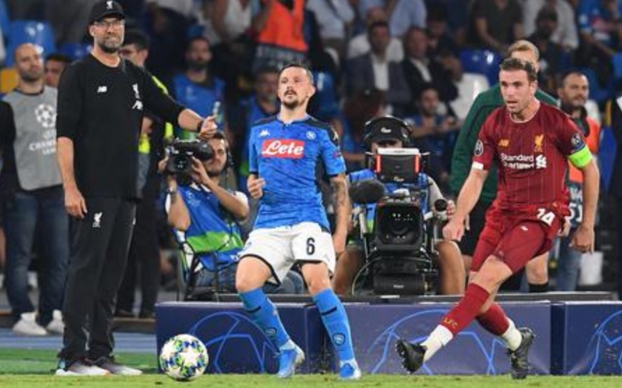 Primo tempo con partita equilibrata contrassegnata da parate e giocate da campioni, si decide tutto negli ultimi minuti. Al 79′ Callejon viene messo a terra in area in contropiede: è rigore. Mertens sul dischetto, spiazza Adrian, è gol. Gli azzurri appena possono vanno in ripartenza. Sono cinque i minuti di recupero. E uno svarione difensivo dei Reds dà il là a Llorente che da rapace in area insacca il 2-0. Il San Paolo esplode.