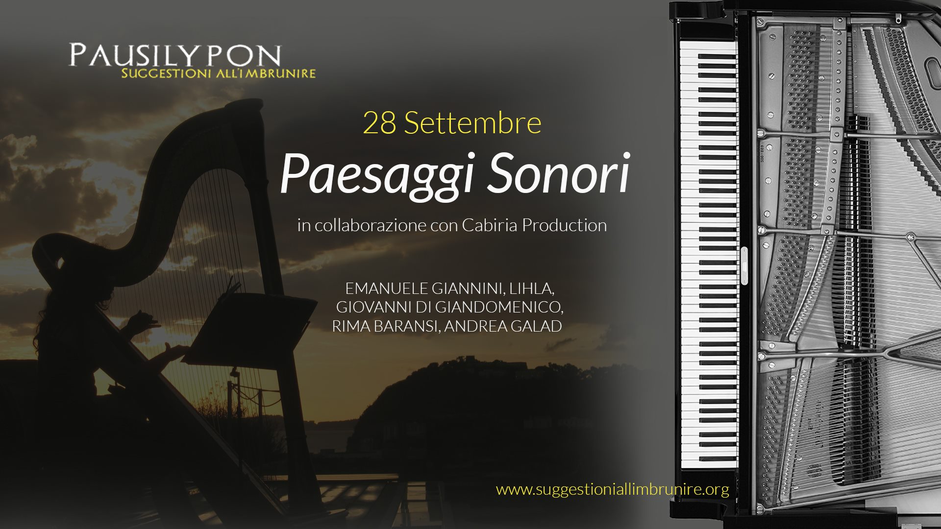 Per la terza serata della Rassegna “Pausilypon: Suggestioni all’Imbrunire”, sabato 28 settembre arriva per la prima volta in Italia “Paesaggi sonori”, uno spettacolo con Emanuele Giannini (gong), Lihla (violoncello), Giovanni Di Giandomenico (piano), e i ballerini Rima Baransi e Andrea Galad (danza). Di Cabiria Production.