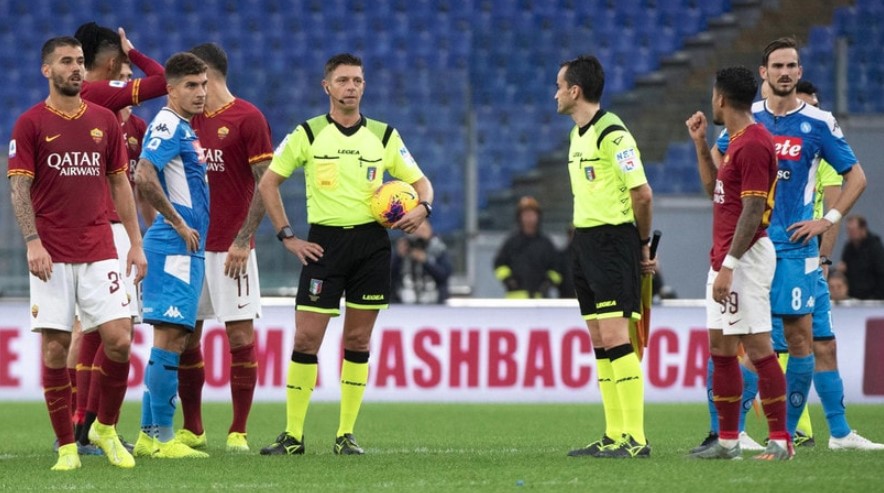 L’arbitro Gianluca Rocchi lo scorso sabato pomeriggio allo stadio Olimpico ha sospeso la partita temporaneamente tra Roma e Napoli al 67esimo minuto per le frasi urlate dai romanisti contro la città di Napoli.