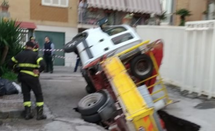 Come riportato da Il Mattino, la strada è sprofondata inghiottendo un mezzo pesante. In estate, invece, nella voragine era sprofondato un tir dei rifiuti. Il veicolo che è “affondato”, è di proprietà di una ditta che sta svolgendo dei lavori in zona.