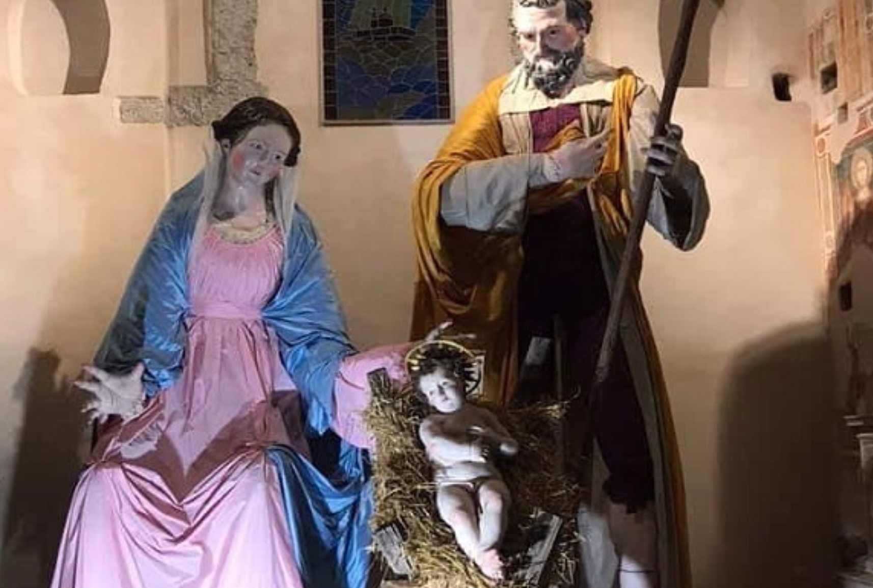 Dopo il successo dei presepi monumentali esposti in piazza del Vaticano nel 2013 e 2017, la bottega Cantone & Costabile ha realizzato un’opera da record. San Giuseppe è ritratto con il bastone fiorito nella mano sinistra e che con la mano destra si porta un lembo della veste al cuore, mentre la Madonna esprime l’estatica meraviglia davanti al piccolo Gesù.