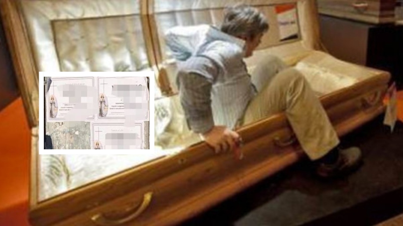 A fare scalpore i dettagli indicati sul manifesto: nome, cognome e le generalità del 40enne. La sua foto, l’orario e il luogo del funerale. Il tutto condito persino dal ringraziamento da parte dei familiari del finto morto. Intanto, è scattata la caccia al lotto.