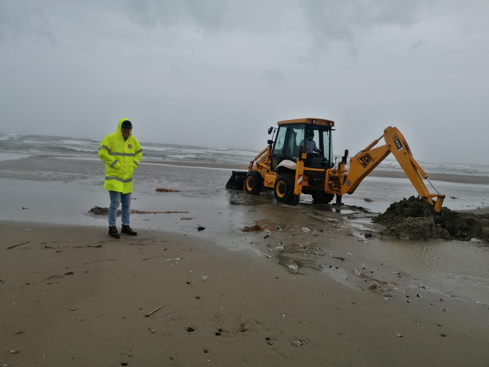 Con impiego di personale e mezzi d’opera si sta intervenendo, nonostante la pioggia battente e la forte mareggiata, rapidamente per eliminare il canale da qualsiasi ostacolo.