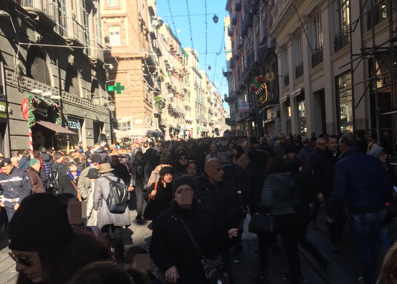 Basta vedere le immagini di via Toledo per rendersi conto del quantitativo di gente che oggi c’è nelle strade del centro di Napoli. Ai tanti turisti che già si trovavano in città, si sono aggiunti i napoletani che vogliono godersi una giornata all’aria aperta, approfittandone magari dei primi saldi per fare qualche spesa. Il risultato? Un’atmosfera di festa unica, quasi magica.