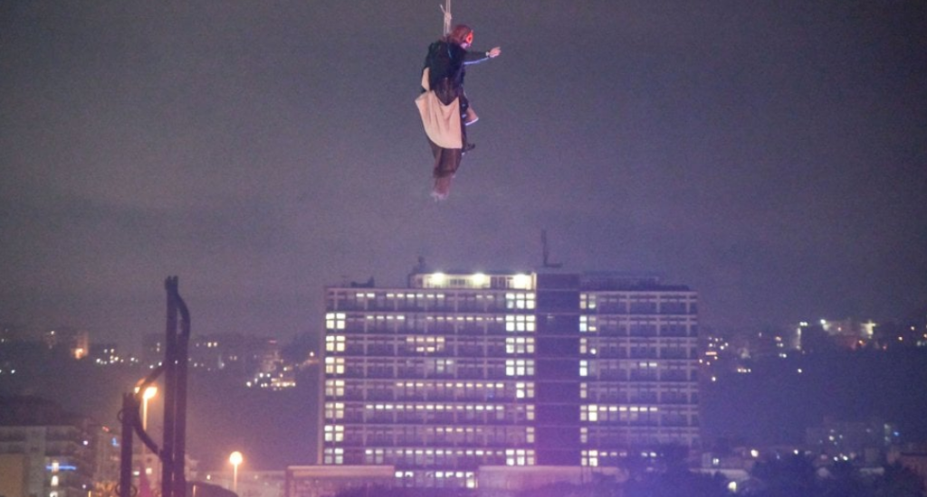 Spettacolo a Napoli, la Befana sorvola la Mostra d’Oltremare e porta i doni ai bambini