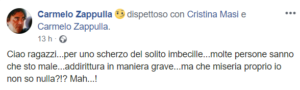 “Ciao ragazzi, per uno scherzo del solito imbecille molte persone sanno che sto male, addirittura in maniera grave. Ma che miseria, proprio io non so nulla? Mah”. Il cantante neomelodico Carmelo Zappulla si sfoga in un post su Facebook.