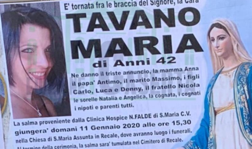 Un giornata dura per la famiglia di Maria Tavano, una donna di 42 anni, venuta a mancare per un brutto male da Recale, in provincia di Caserta.