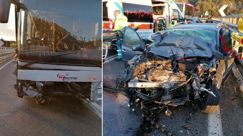 Lievemente ferito anche un passeggero del pullman. Il traffico risulta momentaneamente bloccato. Sul posto sono intervenuti i vigili del fuoco e la polizia stradale per i rilievi del caso. Il traffico è rimasto bloccato a causa della chiusura del tratto.