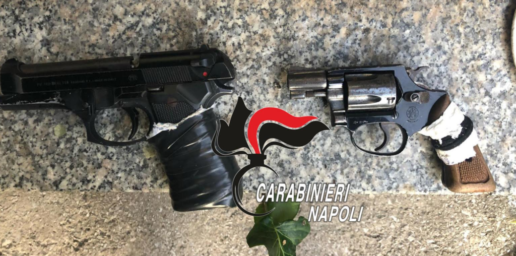 Soccavo, i militari della stazione di Pianura hanno  rinvenuto 2 pistole in un’aiuola di Via Palazziello: una Beretta 92FS calibro 9×21 con matricola abrasa e una Smith & Wesson cal. 38 a tamburo con matricola abrasa. L’impugnatura delle armi era fasciata con nastro adesivo, probabilmente per garantire una più rapida eliminazione delle impronte digitali. Sequestrate, saranno sottoposte ad accertamenti balistici per verificare se siano collegate a fatti di sangue.