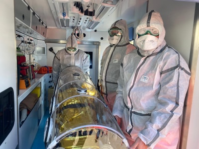 Attimi di tensione al momento dell`imbarco da Ischia per Napoli per l`ambulanza di contenimento. I passeggeri del traghetto hanno manifestato a gran voce il disappunto per l`imbarco dell`ambulanza con il paziente risultato positivo al Coronavirus.