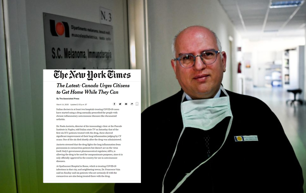 Chiaramente ha menzionato il professor Paolo Ascierto, l’uomo del momento, che ha capitanato il team dei medici dell’ospedale Cotugno di Napoli in questo percorso. “Il dott. Paolo Ascierto, direttore della clinica immunologica dell’Istituto Pascale di Napoli, è stato intervistato sabato scorso sulla rete televisiva nazionale, e ha affermato che, su sei pazienti in terapia intensiva a cui è stato somministrato il farmaco, tre hanno mostrato miglioramenti importanti“.