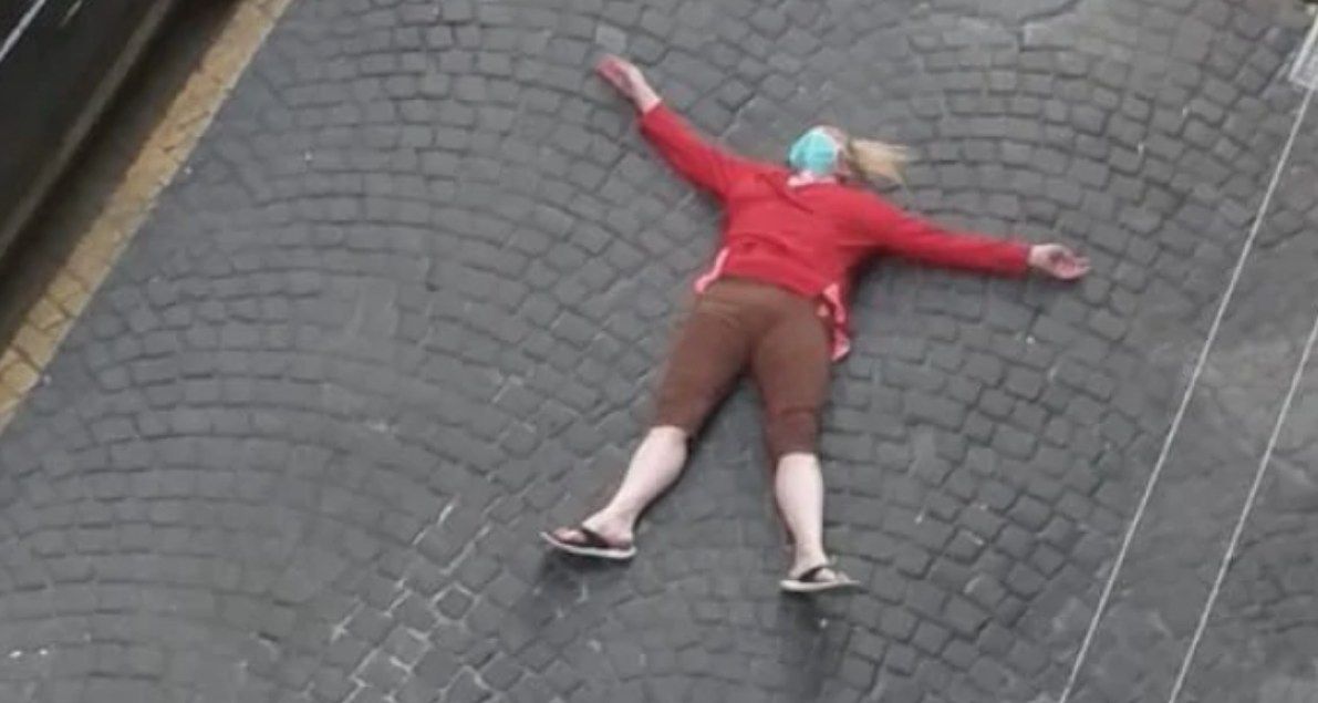 Protesta anomala nel cuore di Napoli. Una donna si è stesa in strada in via Fontanelle, al Rione Sanità, per chiedere aiuto per il marito, a detta sua contagiato dal Coronavirus.