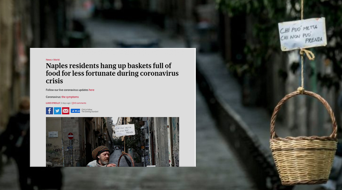 Il giornale britannico Evening Standars ha dedicato un articolo al gesto solidale napoletano nato tra i vicoli del centro storico cittadino. Un modo per celebrare il grande cuore di Napoli, dove nei momenti di difficoltà si cerca sempre di aiutare chi è meno fortunato.