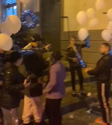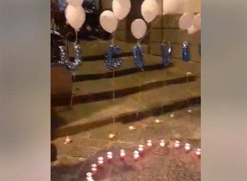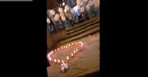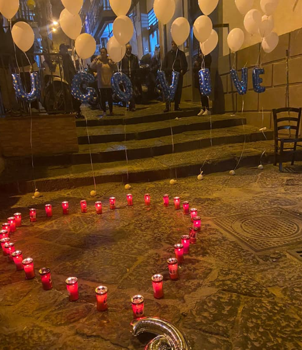 Un gruppo di persone, contravvenendo ai divieti per l’emergenza Covid-19, si è riunito per pochi minuti sulle scale del vicolo, dove era stato allestito un cuore di candele e la scritta fatta con palloncini “Ugo Vive”.