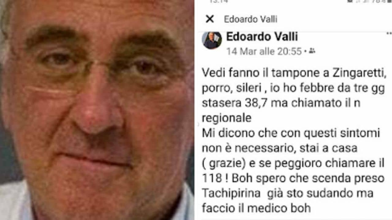 “Vedi fanno il tampone a Zingaretti, Porro, Sileri, io ho febbre da 3 gg, stasera 38,7 – scriveva Valli – ma chiamato il numero regionale. Mi dicono che con questi sintomi non è necessario, stai a casa (grazie) e se peggioro chiamare il 118! Boh, spero che scenda. Preso Tachipirina già sto sudando ma faccio il medico boh”, è l’amaro sfogo.