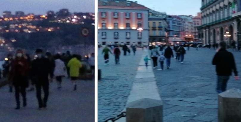 Molti i cittadini che giustamente si sono riversati in strada per sfruttare l’orario che la Regione Campania ha indicato per la mobilità individuale. Chiarito che lo jogging è vietato, molti sono usciti per passeggiare.