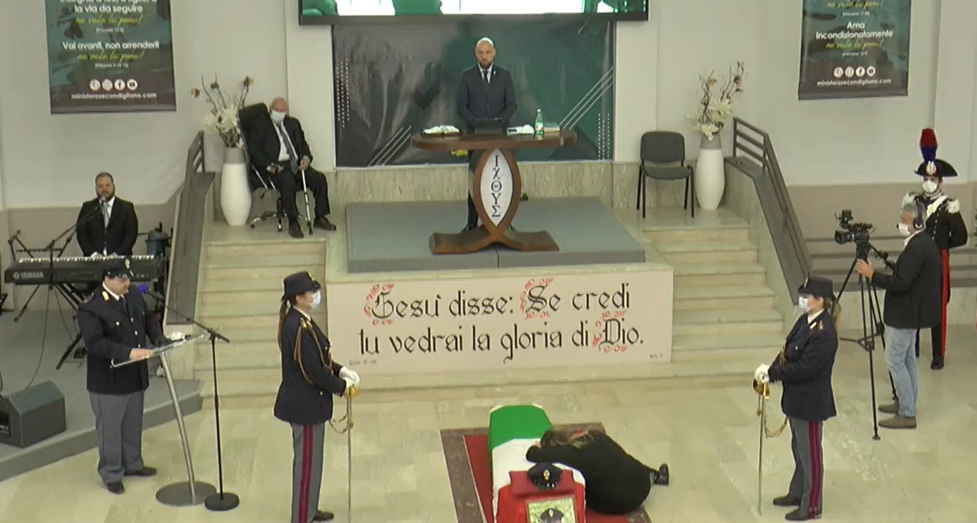 “Quello che è accaduto a nostro fratello Pasquale ci testimonia che manca ancora l’amore per il prossimo in questa umanità, l’egoismo e la malvagità a volte sono sovrani”. Lo ha detto il pastore evangelico Christian Parisi del Ministero cristiano di Secondigliano, aprendo il rito funebre. “In una situazione critica come quella che la nostra nazione sta vivendo – ha aggiunto – e in cui tutti abbiamo fatto sacrifici, come uomini abbiamo sperato che si fosse sviluppato l’amore per il prossimo, una soluzione per questa umanità che purtroppo amore non ha. Signore in questi momenti difficili non ci resta che sperare in te”, ha concluso.
