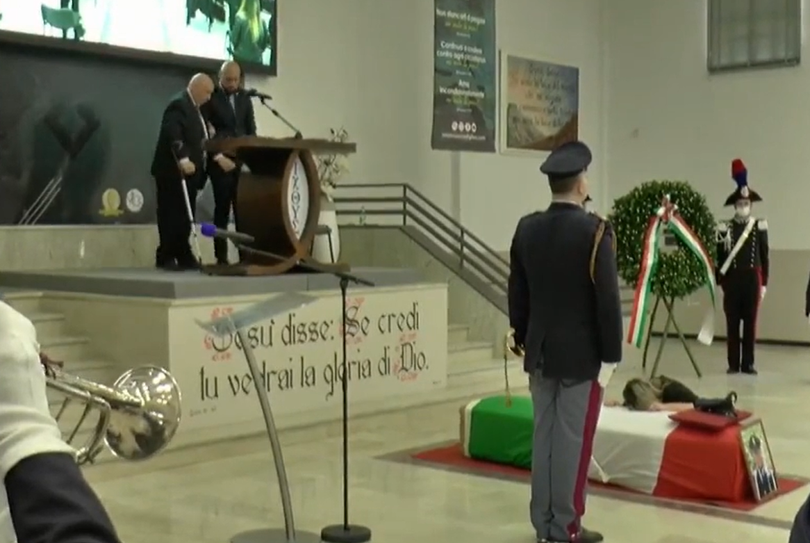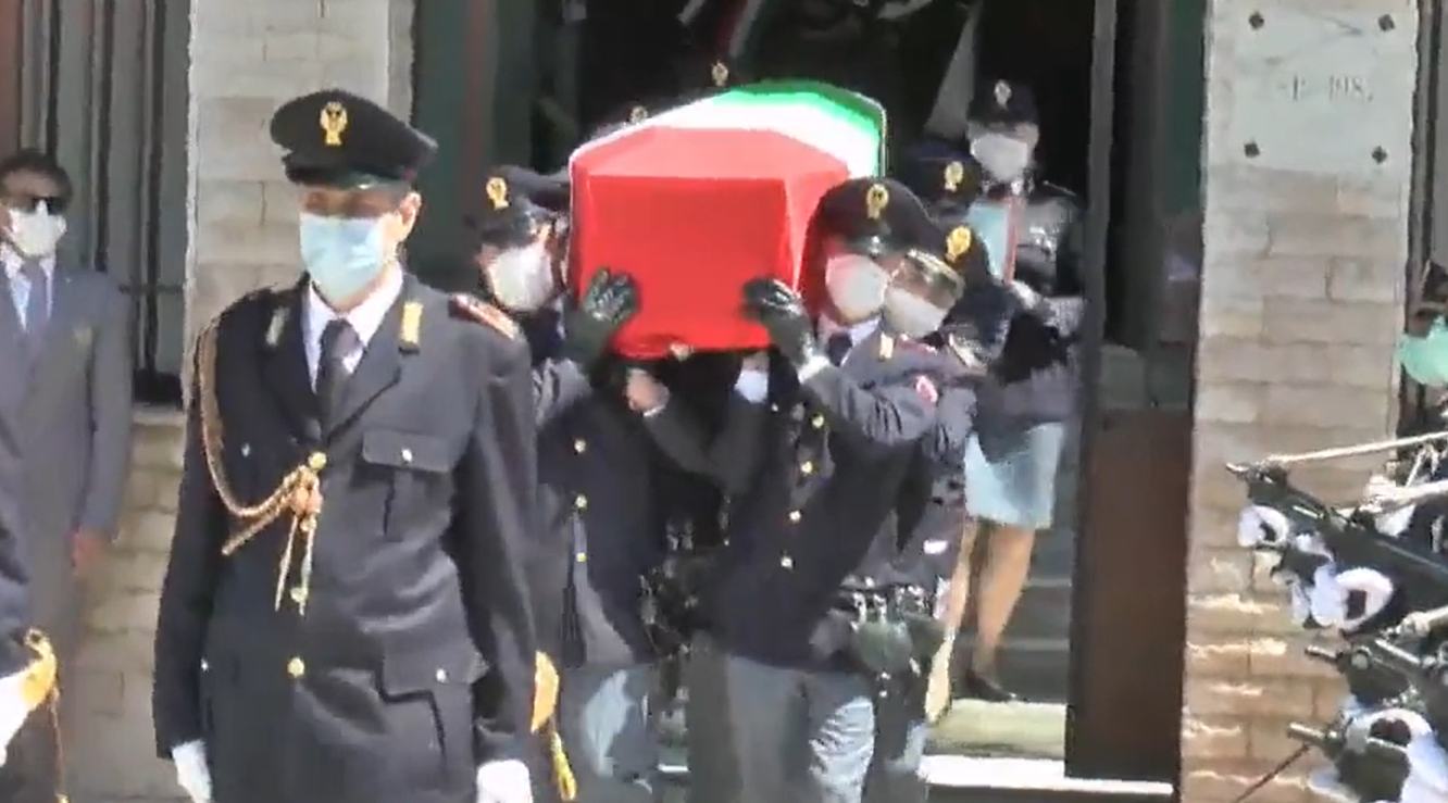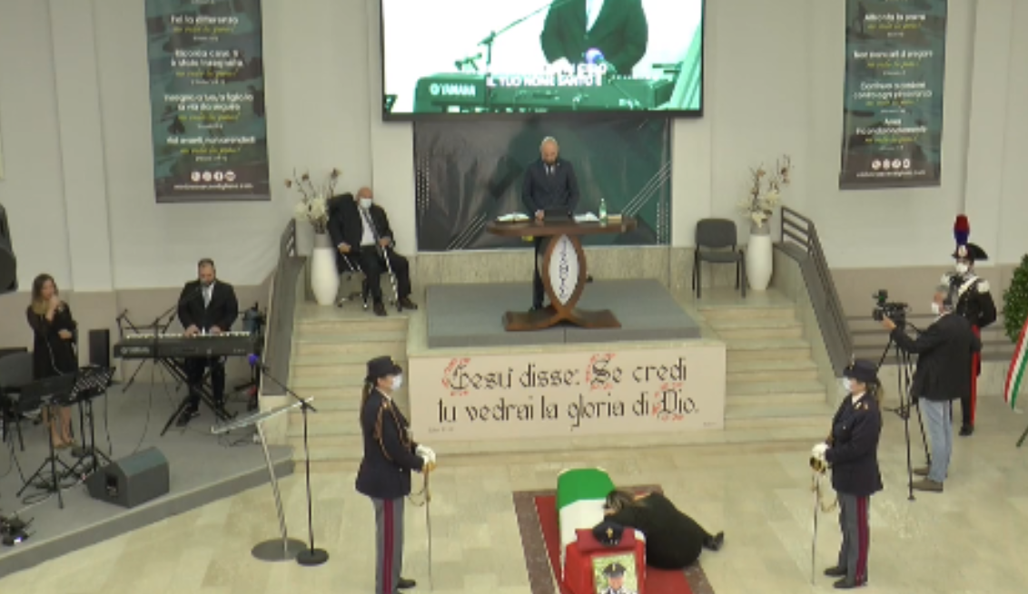 “Dove sta Dio quando un uomo ha la peggio è muore?”, ha detto uno dei preti nella conclusione della Cerimonia. “Anche l’uomo di legge che è lì, che ha osservato tutto quello che sta succedendo, alla fine farà questa grande liberazione. Continuiamo ad amare, ad avere pietà di chi fa altre scelte, l’amore di Dio è quello che ci dà la forza”. Il feretro è poi stato accompagnato fuori dal suono delle trombe e dal saluto militare dei colleghi presenti.