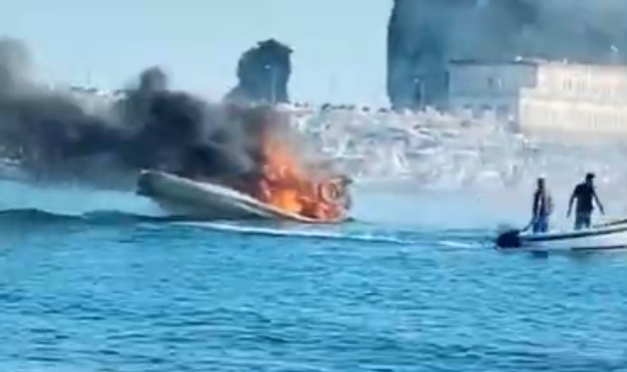 Un gommone ha preso fuco a Nisida questo sabato pomeriggio. L’imbarcazione improvvisamente è stata avvolta dalle fiamme. Come si vede dal video pubblicato da Mattia Febbraio su Tik Tok, una grande colonna di fumo si è innalzata in cielo.
