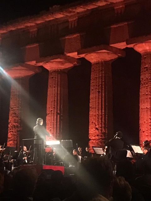 Fortemente significativo il doppio messaggio. La scelta di fare un concerto al Sud, così fortemente penalizzato dalla pandemia Covid è stata di Muti, napoletano e veracemente attaccato alle sue origine. Un omaggio alla sua terra. Memorabile quando il maestro recita l’incipit di “A luna nova” di Salvatore Di Giacomo. E dal tramonto infuocato che si infila attraverso le ciclopiche colonne doriche del Tempio di Apollo si passa alla luna piena che fa capolino fra i centenari e monumentali pini marittimi.