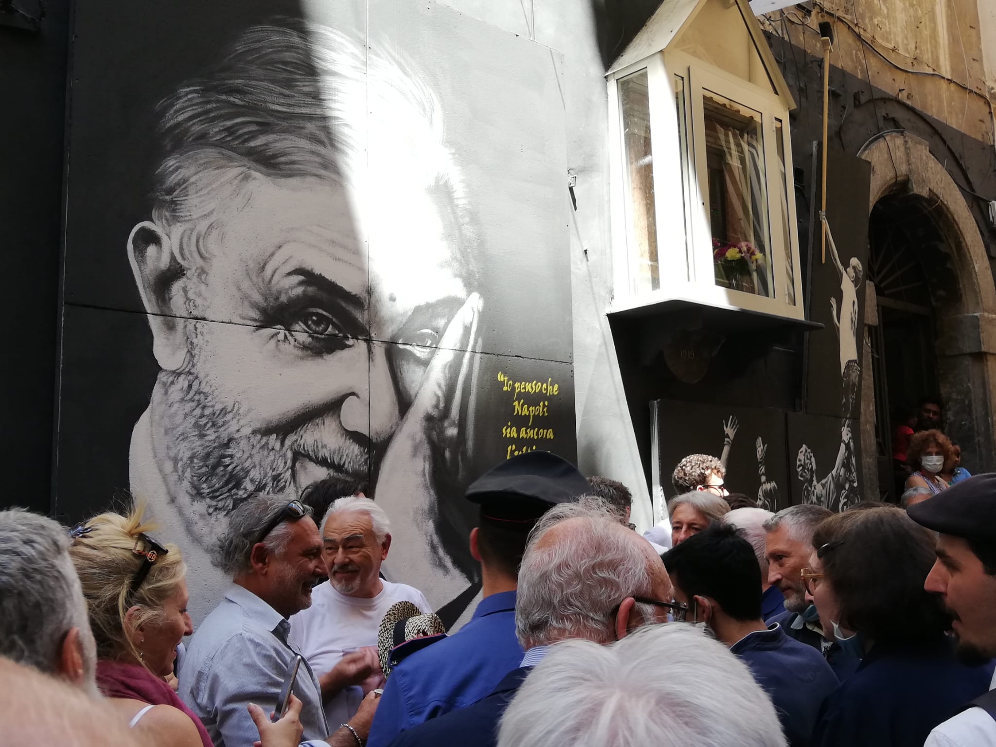 Il volto sorridente e compiaciuto di Luciano De Crescenzo da oggi osserva i vicoli dei Quartieri spagnoli di Napoli. In vico Tre Regine e’ stata svelata l’installazione su pannelli che precede la realizzazione di un murale dedicato a De Crescenzo. Una cerimonia che si e’ svolta a esattamente un anno dalla scomparsa dell’eclettico filosofo che per tutti a Napoli e’ ‘O Professore‘.