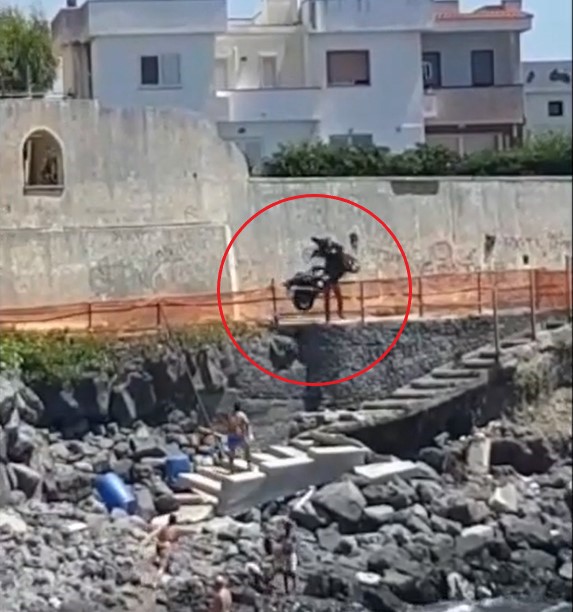 All’improvviso il marito della donna ha sollevato di peso lo scooter dell’amante e lo ha scaraventato sulla scogliera. Il motorino è volato prima oltre la ringhiera di protezione poi senza nessuna esitazione l’uomo lo ha lanciato sugli scogli dell’arenile sottostante.