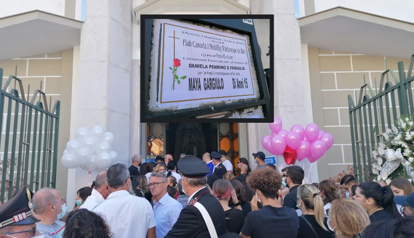 Dolore e commozione i sentimenti che hanno caratterizzato questo momento. La bara è stata accompagnata da palloncini rosa e bianchi. Tanti i fiori, moltissimi i messaggi d’affetto per Maya. Tutti indossavano la mascherina.