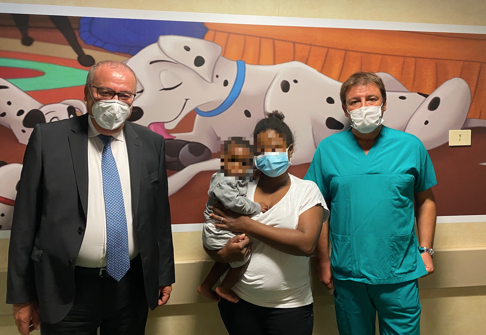 I soccorsi sono partiti da Lampedusa nel centro di prima accoglienza di Crotone e il ricovero del piccolo nell’ospedale cittadino con il successivo trasferimento al Monaldi dove l’equipe diretta da Guido Oppido, primario dell’unità Complessa di Cardiochirurgia Pediatrica, ha eseguito una delicata operazione durata 5 ore. «Il piccolo avrebbe potuto morire nel giro di pochi giorni o, nelle migliori ipotesi, qualche mese, perché affetto da tetralogia di Fallot, chiamata morbo blu per la cianosi causata da gravi difetti intraventricolari» spiega il medico che ha eseguito «un intervento correttivo e definitivo che garantirà al piccolo una vita normale».