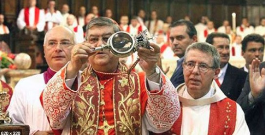 . A darne notizia il cardinale Crescenzio Sepe, arcivescovo della città partenopea. Le reliquie, portate sull’altare dal presule, erano già senza grumi. Il sangue, dunque, era già sciolto quando le ampolle sono state prelevate dalla cassaforte.